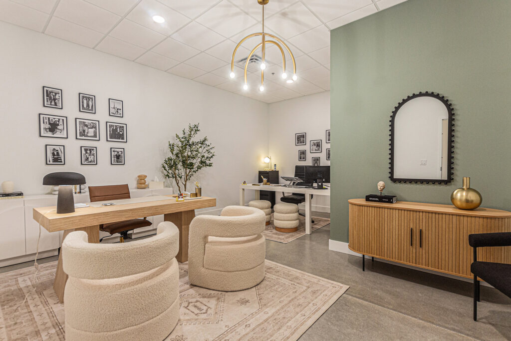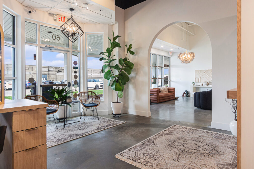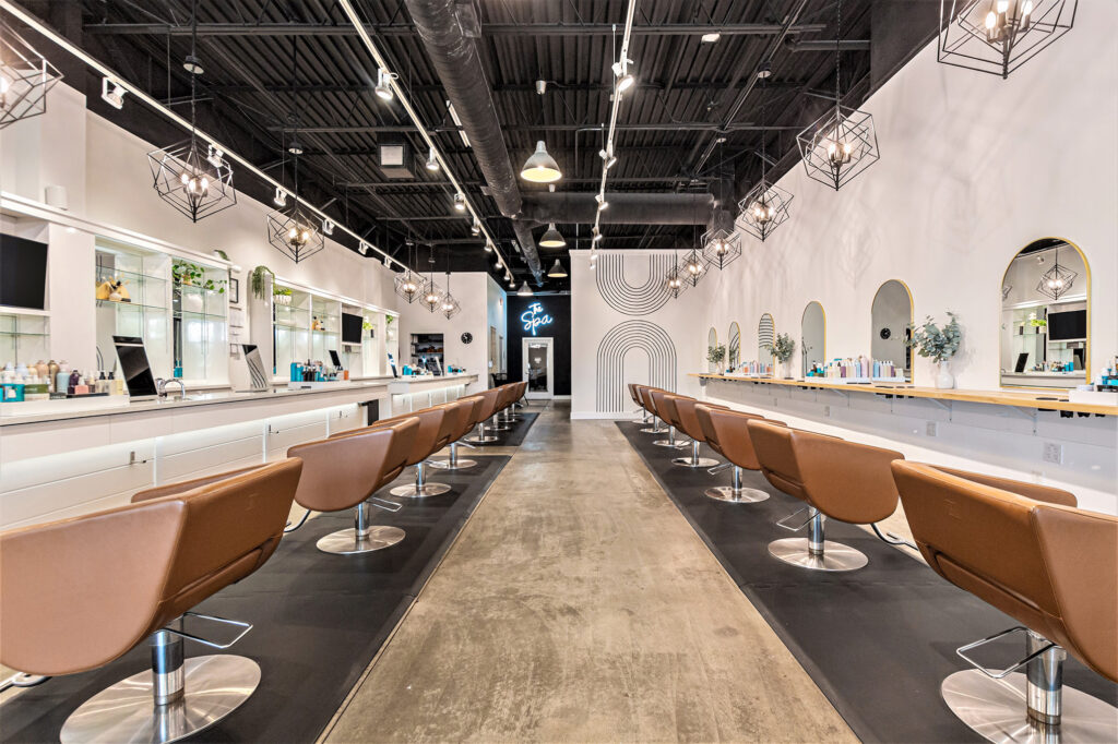 Dykhouse Construction transformed Bombshell Salon with a comprehensive interior renovation, including new framing, electrical, HVAC, and custom build-outs. The project featured the addition of elegant bridal suites, private offices, a relaxing sauna, and a welcoming main lobby. Every detail was crafted to enhance functionality and style, creating a luxurious and elevated experience for both clients and staff.