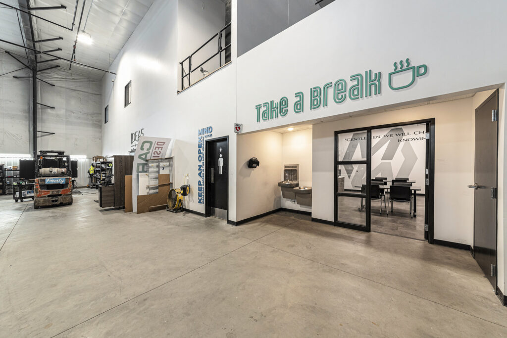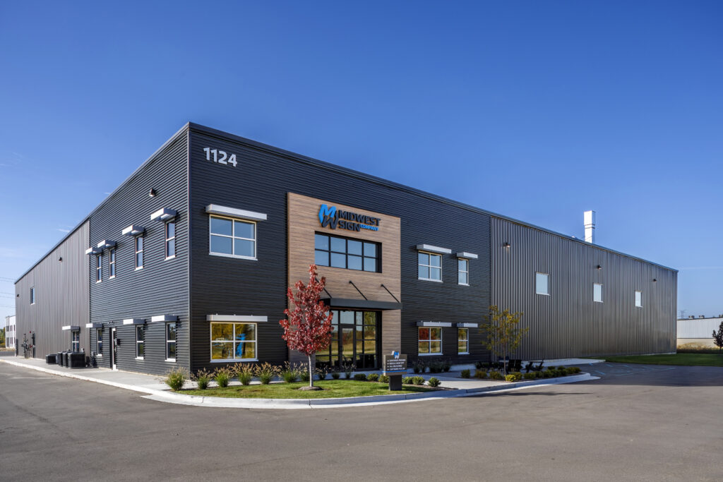 Dykhouse Construction built this ground-up pre-engineered metal building for Midwest Sign, seamlessly integrating office space for a functional and efficient work environment. The project features upgraded finishes around the main entry and office area, creating a polished and professional look. A dedicated paint booth supports specialized operations, enhancing workflow efficiency.